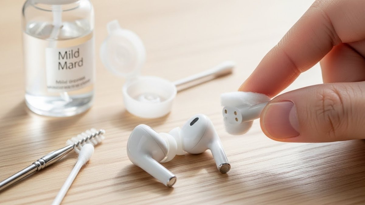 ノズル内部のメッシュや通気口に詰まった耳垢は音質低下や悪臭の原因になります。小さな専用ブラシや柔らかいピンセット、乾いた綿棒で慎重に取り除きます。強く押し込むと内部構造を傷めるので、表面を軽く掃くように行ってください。