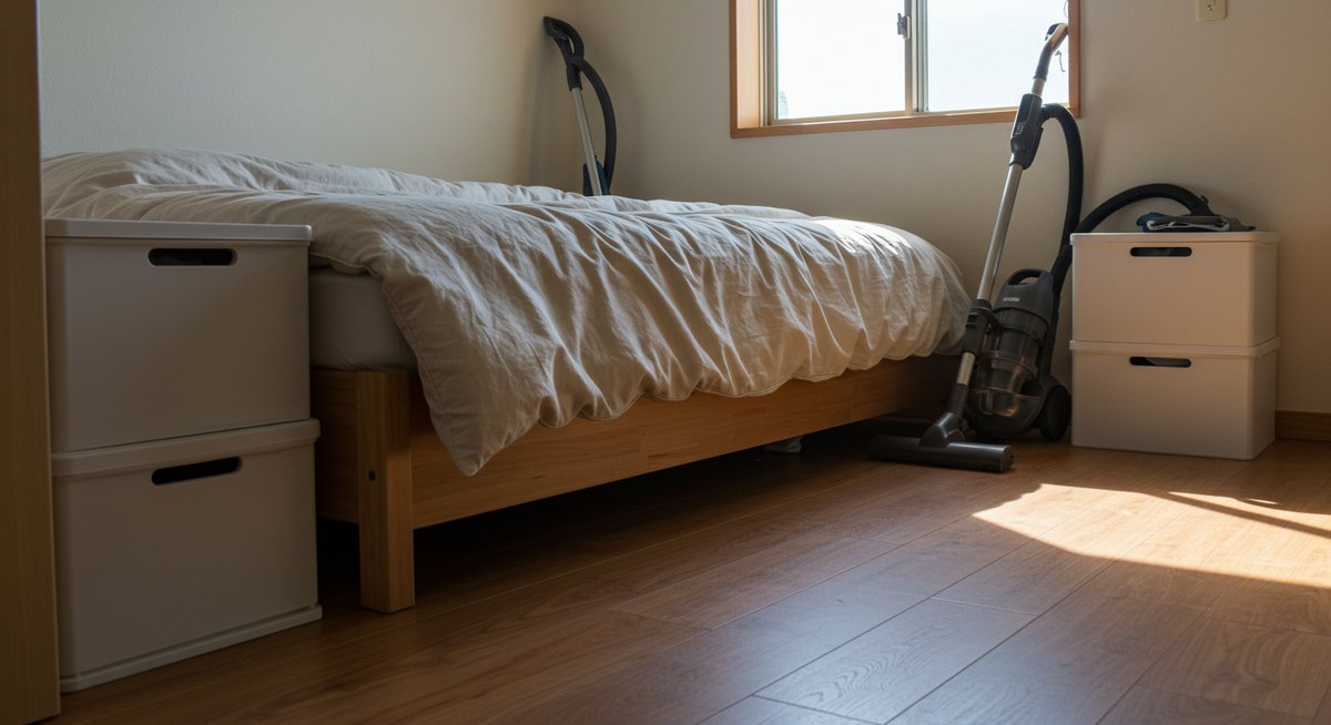 床に物を置かないように収納を用意し、家具は脚付きや隙間のあるものを選ぶと掃除機やロボットが入りやすくなります。低い棚や引き出しで細かい物をしまうと床がすっきりします。