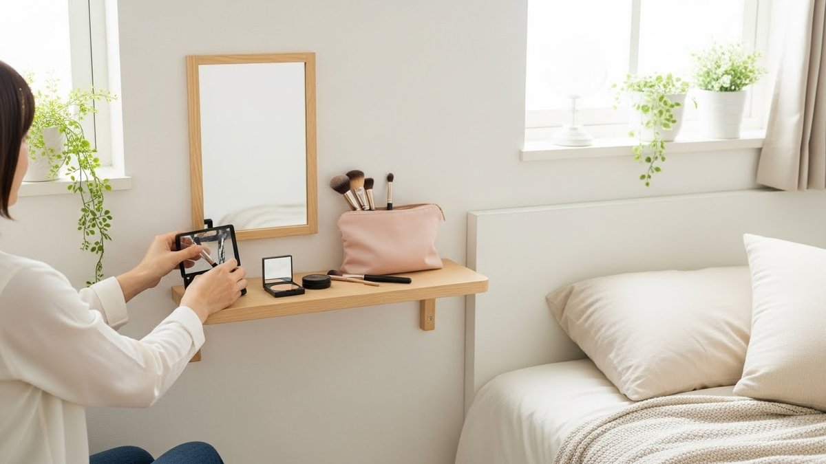 ドレッサーを置かなくても、ちょっとした工夫で快適なメイク環境を作れます。鏡や照明、収納の工夫で動線を短くし、使いやすさを確保することが可能です。以下に具体的なアイデアを紹介します。