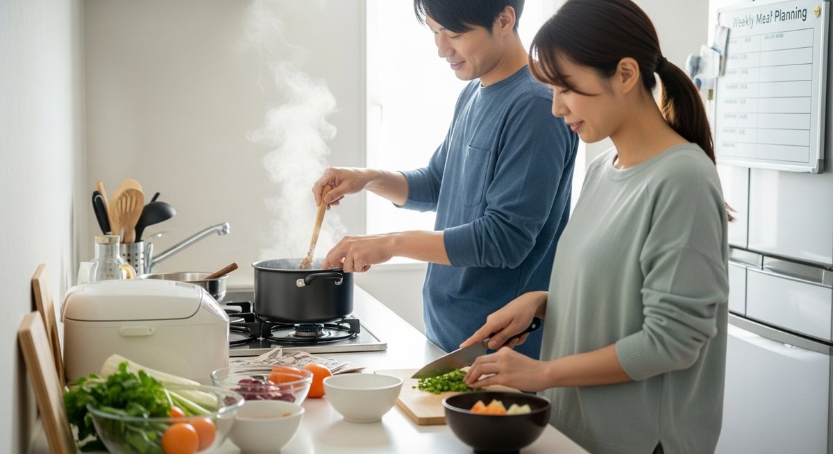 紙のメモやスマホのメモアプリに書いておけば確認が楽です。料理の得意不得意に合わせてメニューを振り分けると、お互いの負担が偏りません。余った食材で作れる代替メニューもいくつか用意しておくと、急な予定変更にも対応できます。初めは柔軟に変更して、無理のないペースを見つけてください。