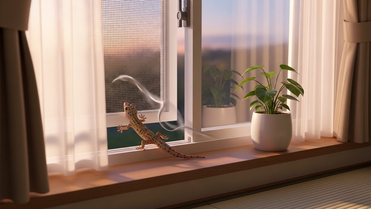 この間、子どもやペットを別室に移し、網戸や外側の障害物がないか確認してください。ヤモリが外へ出たらすぐに窓を閉めて二次侵入を防ぎます。無理に追い立てず、落ち着いて誘導することが大切です。